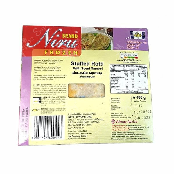 Niru Frozen Stuffed Rotti with Seeni Sambol, 400g
