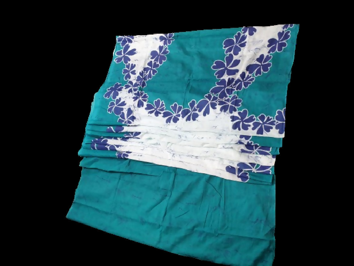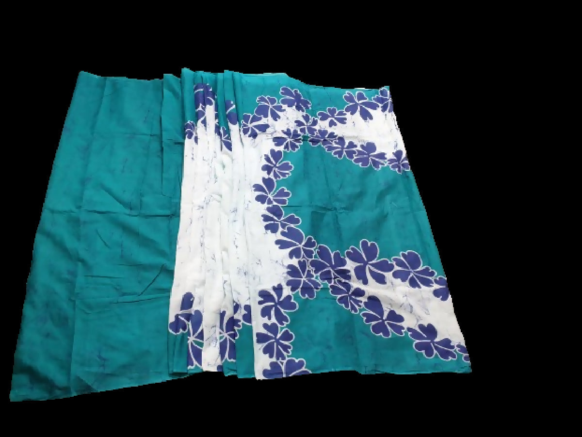 This charming 100% cotton saree comes with green, white and blue batik styled decoration, suitable for all normal functions. Jacket piece is attached to the saree itself.