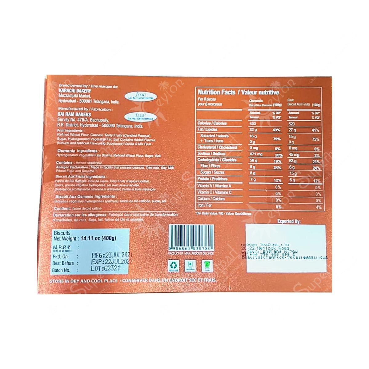 Karachi Bakery 2-en-1 Frutas y Galletas Osmania