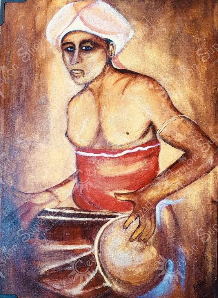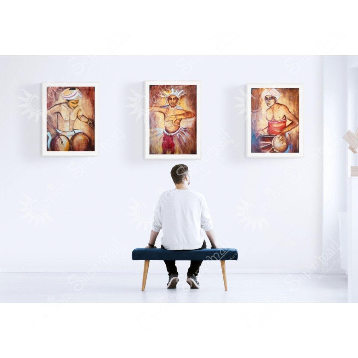 Original Sri Lankan Wall Art Kandyan Drummers and Dancers Oil Painting, Set of 3