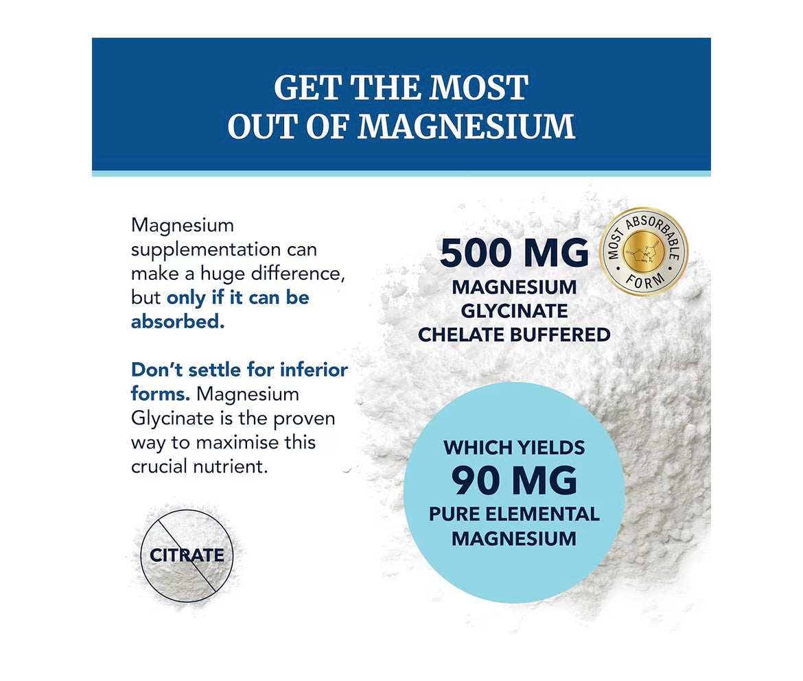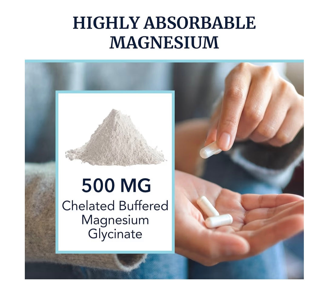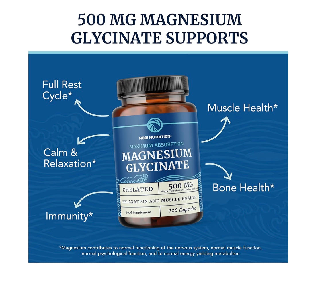 Magnesium Glycinate 500mg | Chelated for High Absorption | Muscle Relaxation, Bones, Heart, Nerve, Rest & Calm Support for Women & Men | Magnesium Chelate Supplement & Bisglycinate Complex | 120ct
