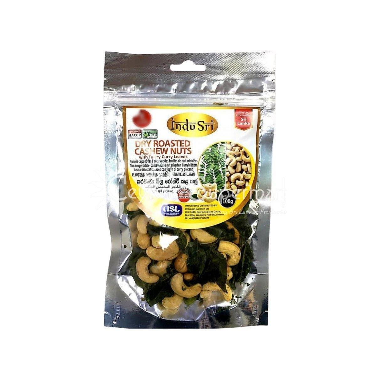 Indu Sri Dry Roasted Cashew Nuts Savoury Snack with Curry Leaves, 100g