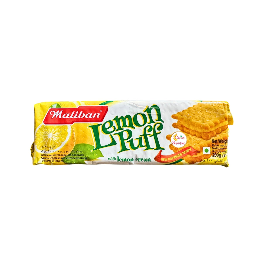 The timeless Maliban Lemon Puff has enjoyed the status of tea and snack time staple in Sri Lanka for generations. This classic which comes in the form of two soft flaky biscuits, joined by a sweet and sour punch of real lemon cream has delighted and fulfilled Sri Lankans of all ages with its iconic taste. Indulge in the nostalgia of generations past with Maliban Lemon Puff Biscuits. These soft, flaky biscuits are a sweet and sour treat with a real lemon cream filling that has satisfied Sri Lankans of all ages. Bring a classic taste to your tea and snack time routine!