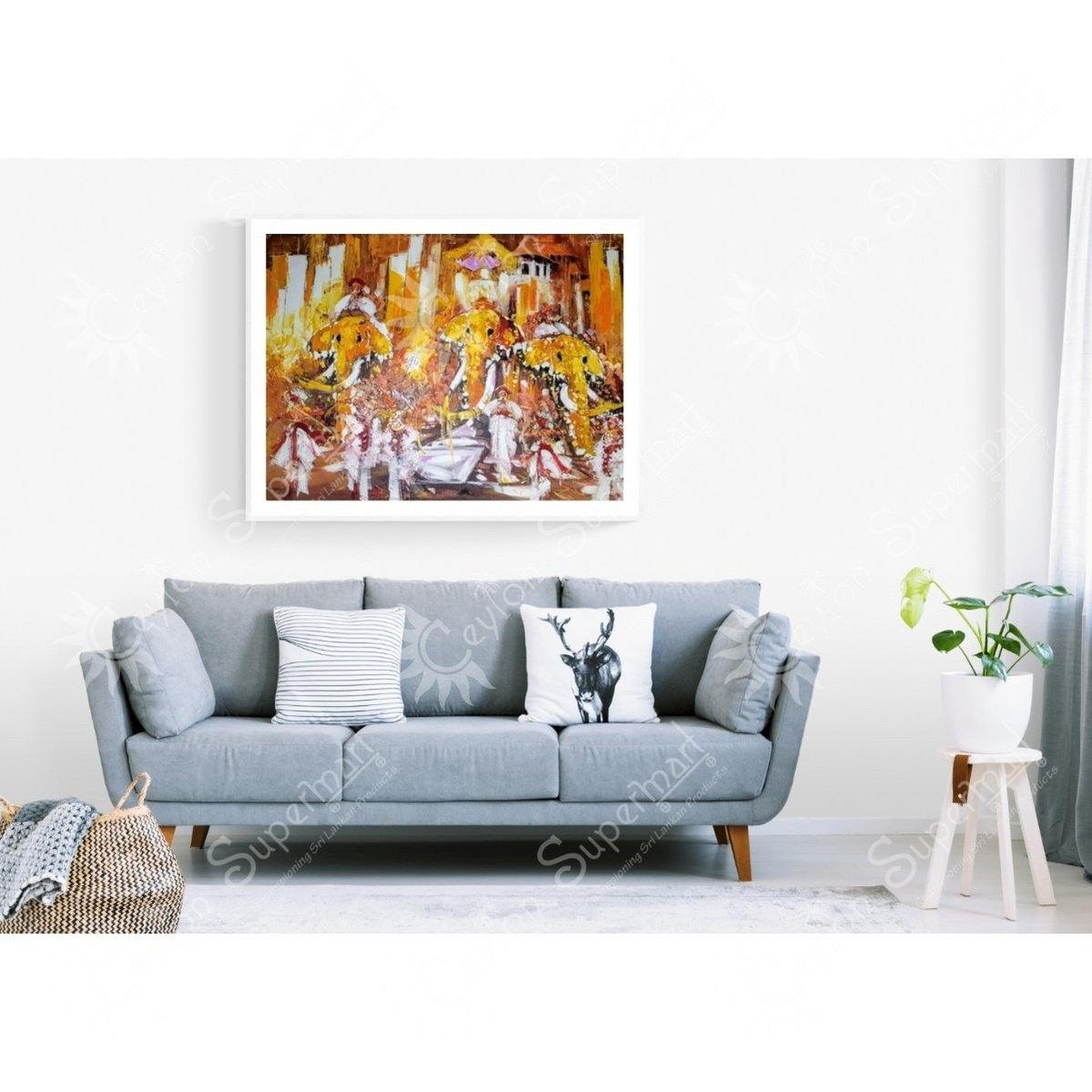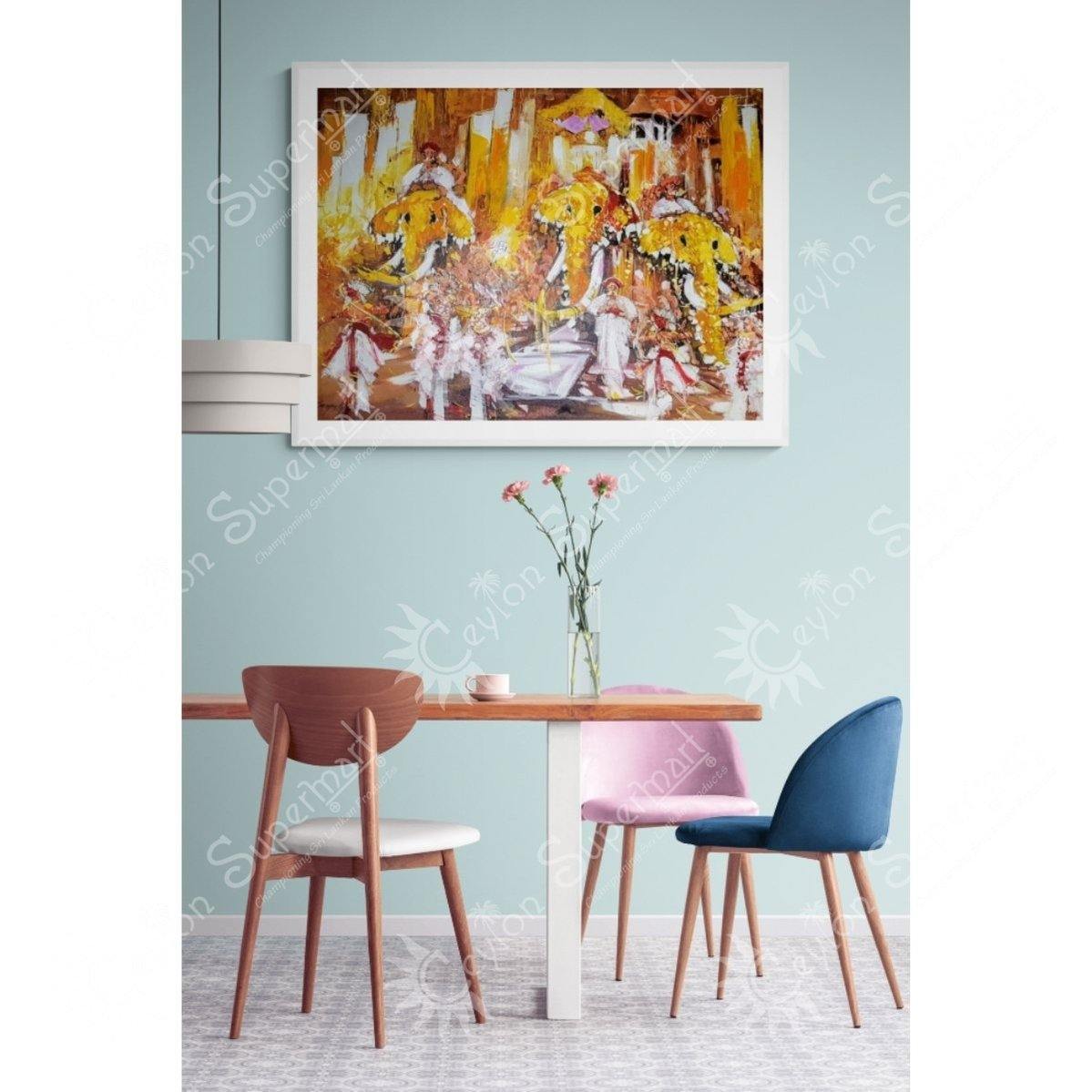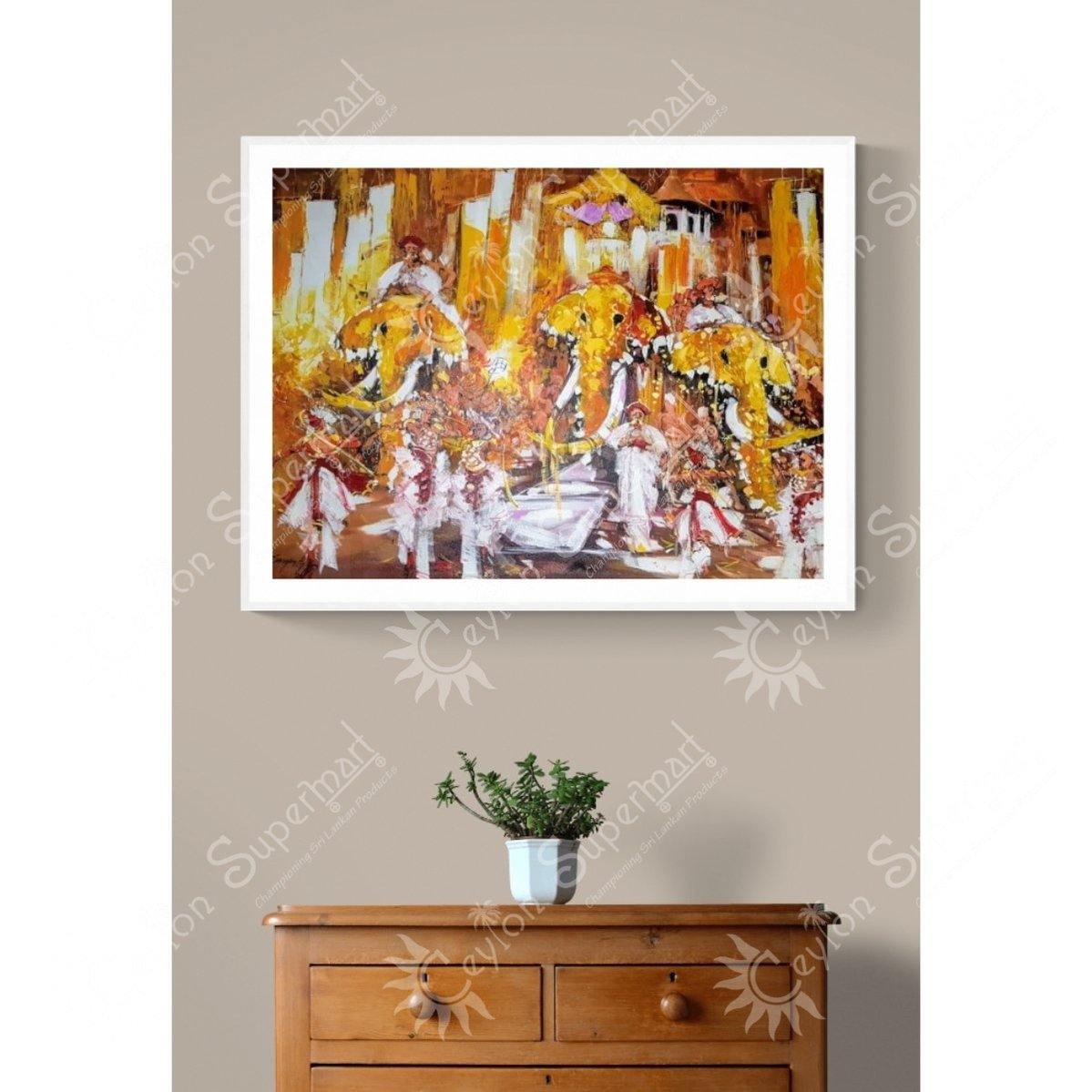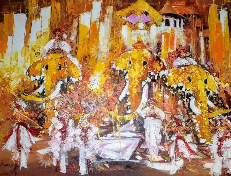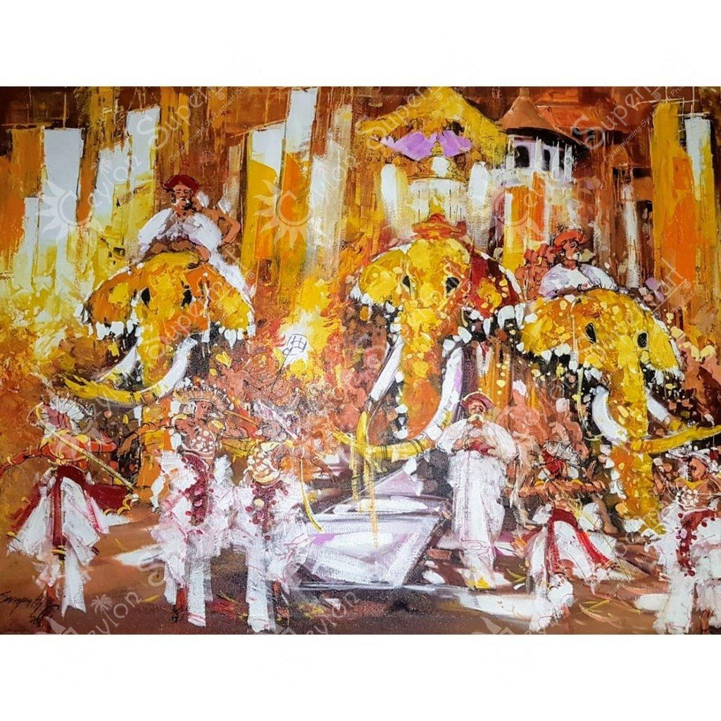 Original Sri Lankan Wall Art Kandy Esala Perahera Oil Painting, 122 x 91 cm