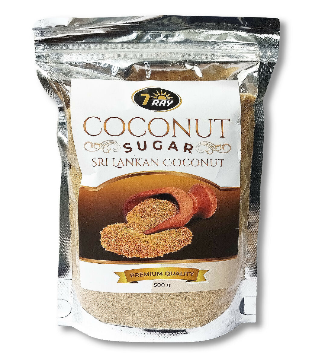 Seven Ray premium quality Organic Coconut Sugar is made of Coconut Sap collected from Sri Lankan Coconut plantations, maintained under good agriculture management practices.